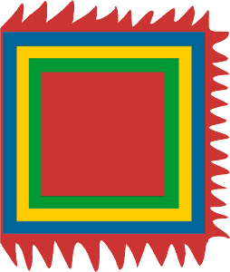 Die buddhistische Flagge Vietnams besteht aus fünf vertikalen Streifen in Blau, Gelb, Rot, Weiß und Orange sowie fünf horizontalen Streifen in denselben Farben.