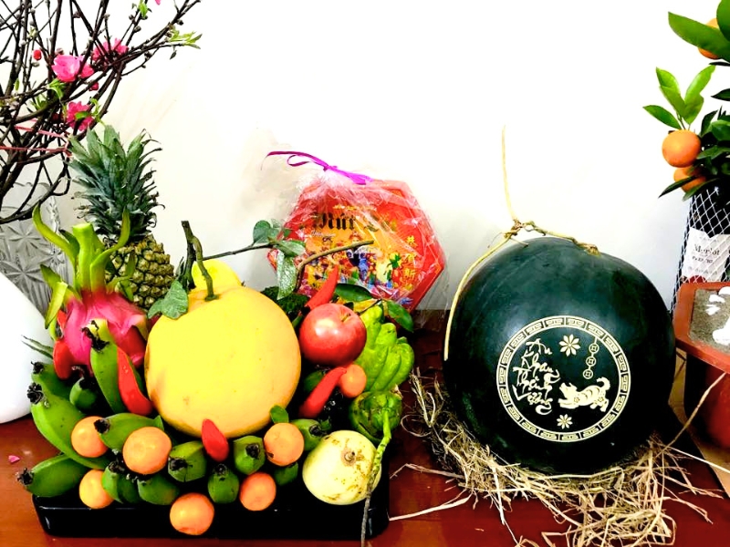 Die Fünf-Früchte-Platte auf dem Tết-Altar symbolisiert somit Wohlstand, Noblesse, Langlebigkeit, Gesundheit und Frieden.