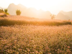 Die Buchweizenfelder in Ha Giang erreichen ihren Höhepunkt zwischen Oktober und November, wenn die Blüten in voller Pracht stehen und ein einzigartiges Naturschauspiel bieten. In diesen Monaten verwandelt sich die gesamte Region in eine märchenhafte Landschaft voller zarter, sanfter Farbtöne.