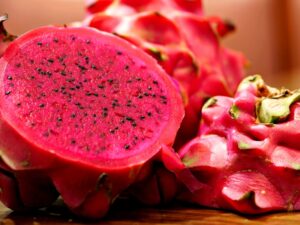 Unter den exotischen Früchten Vietnams ist die Drachenfrucht, thanh long, zweifellos eine der bekanntesten. Mit ihrer leuchtend pinkfarbenen Schale und den grünen Schuppen ist sie ein Blickfang auf jedem Markt.