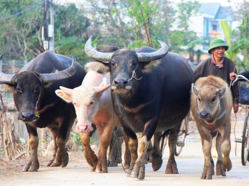 Die Mường fertigen einige Tage vor Têt Holzglöckchen an, um in der Silvesternacht die „Seelen der Büffel“ zu rufen. Bei Fackelschein danken sie den Büffeln – unverzichtbare Helfer in der Landwirtschaft – für ihre Dienste im vergangenen Jahr. Werkzeuge werden zudem mit Reiskuchen verziert, als symbolische Einladung, am Fest teilzunehmen und sich ebenfalls auszuruhen.