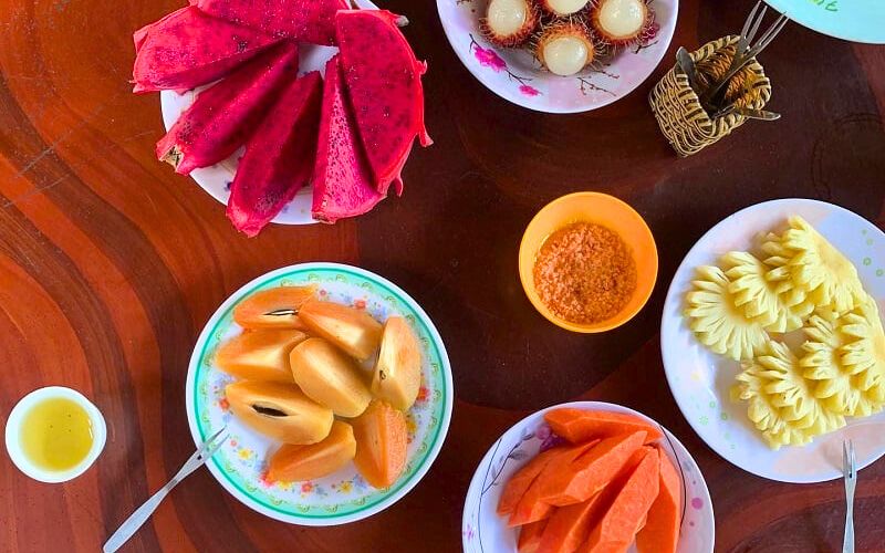 Im April und Mai sind die Temperaturen meist angenehm, was Erkundungen der üppigen Landschaften und Wasserläufe entspannter macht. Juni und Juli sind zwar heißer, bieten jedoch die Möglichkeit, die Früchte in ihrer besten Reife zu erleben – mit den typischen intensiven Aromen Südvietnams.