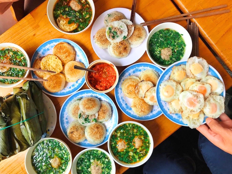 Cette galette de riz grillée sur feu de charbon est croustillante et généreusement garnie de pâté, œuf battu, fromage, bœuf séché, oignons verts, et une touche de mayonnaise ou de sauce pimentée. C’est le snack préféré des jeunes à Dalat, idéal pour une pause gourmande en fin d’après-midi.
