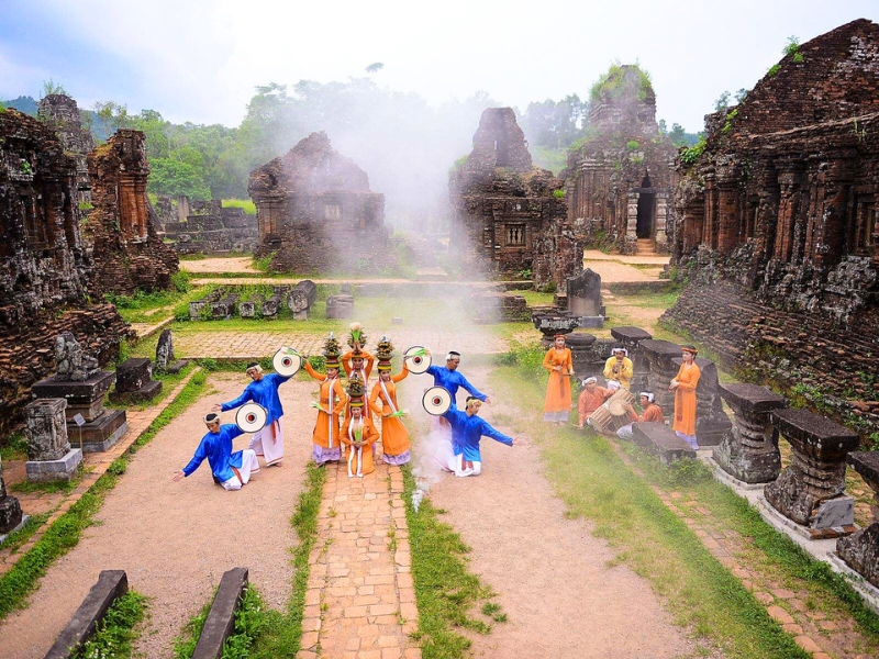 In einem engen, von dicht bewachsenen Bergen umgebenen Tal gelegen, umfasst My Son ein Ensemble von Cham-Tempeln, die zwischen dem 4. und 13. Jahrhundert errichtet wurden. Als eines der Meisterwerke der religiösen Architektur der Cham bestand der Komplex in seiner Blütezeit aus mehr als 70 Ziegel- und Steintürmen, von denen viele trotz Kriegsschäden und Verfall erhalten geblieben sind.