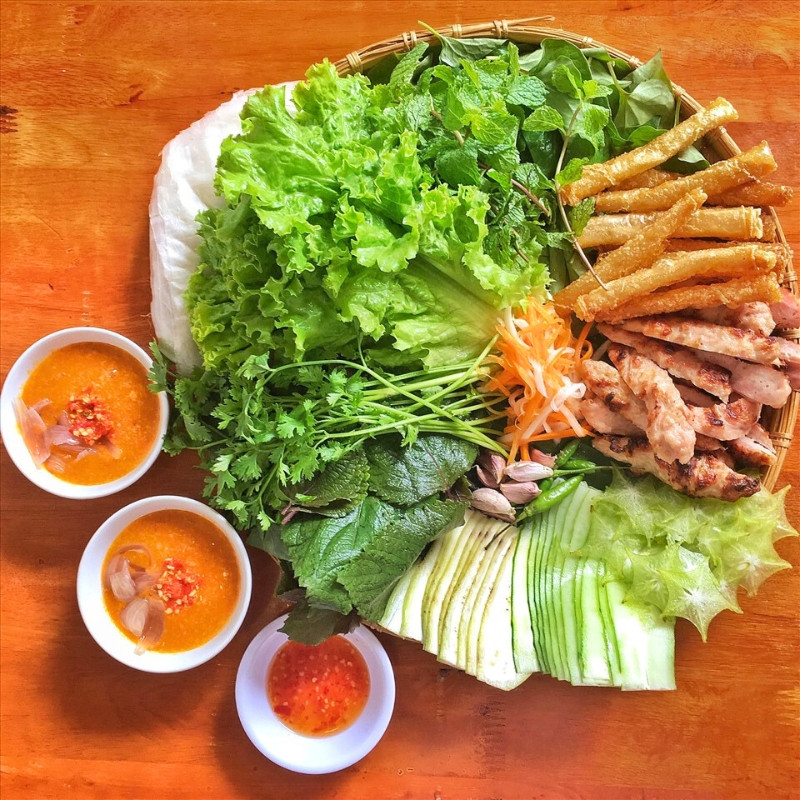 Originaire de la petite ville de Ninh Hoa, au nord de Nha Trang, le nem nuong est devenu une véritable spécialité incontournable dans toute la région. Il s’agit de brochettes de porc haché, finement assaisonné puis grillé au feu de charbon, qui dégagent un parfum irrésistible. Le plaisir réside dans la manière de le déguster : on enroule la viande encore chaude dans une galette de riz souple, accompagnée de légumes croquants, d’herbes aromatiques et de lamelles de légumes marinés. Le tout est ensuite plongé dans une sauce onctueuse à base de cacahuète et de sauce de poisson, qui équilibre parfaitement douceur et saveurs relevées. Convivial et généreux, le nem nuong Ninh Binh est l’un de ces plats qui se partagent volontiers en famille ou entre amis, dans l’ambiance chaleureuse d’une table vietnamienne.