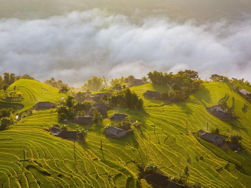 Die Reisterrassen zählen zu den schönsten Vietnams. Besonders beeindruckend sind sie zur Erntezeit im September und Oktober, vor allem in Ban Phung, Ban Luoc und Thong Nguyen.