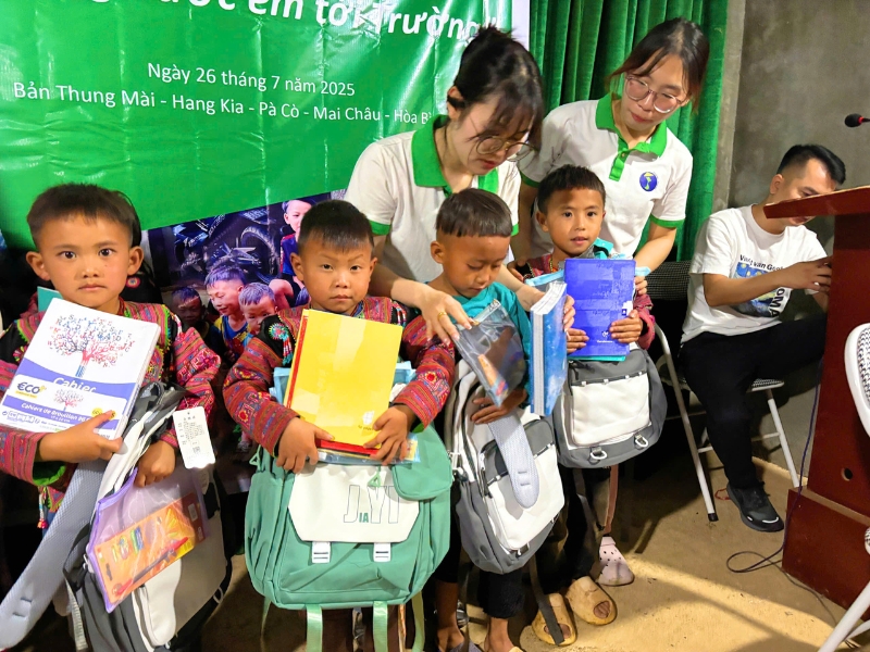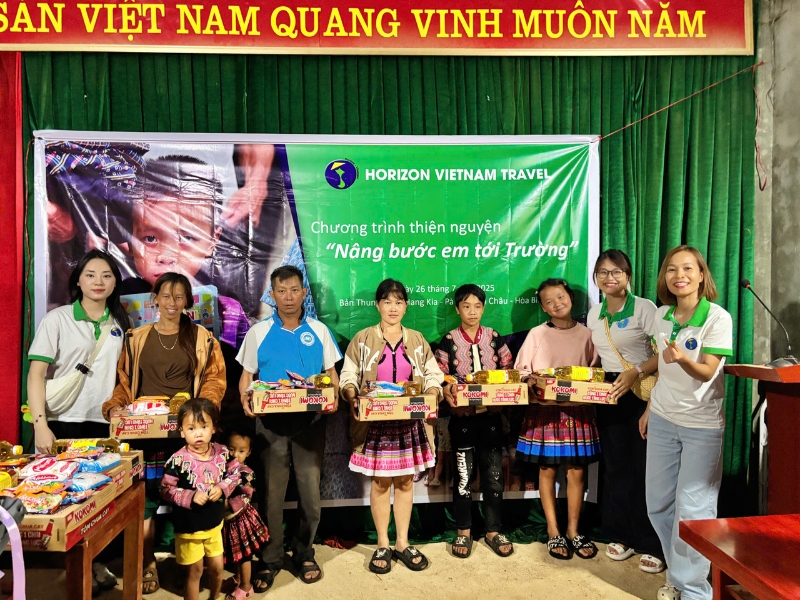Im Mai 2025 startete Horizon Vietnam die Kampagne „Ihr Gepäck, die Zukunft vietnamesischer Kinder“ und lud Reisende ein, Schulmaterialien für benachteiligte Kinder mitzubringen. Am 26. Juli 2025 konnte dank der Großzügigkeit aller die erste Solidaritätsaktion im Dorf Thung Mai, in der Gemeinde Hang Kia, Bezirk Mai Châu, Provinz Hoa Binh, stattfinden.