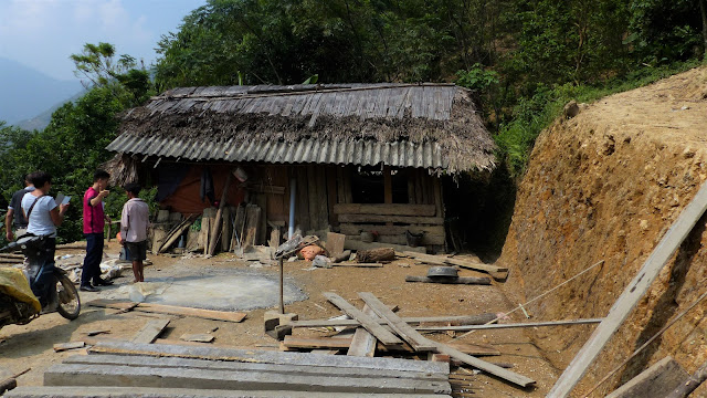 Als wir das Dorf im September verließen, war das alte Haus noch nicht abgebaut, aber das Holz für das neue Haus begann bereits anzukommen.