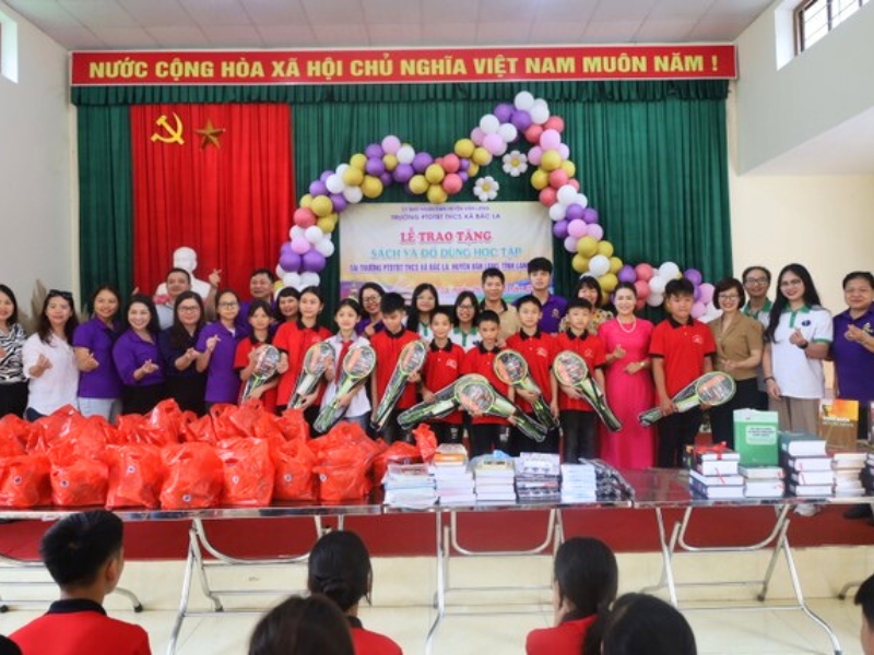 An der halb-internen ethnischen Mittelschule Bắc La im Bezirk Văn Lãng haben wir zahlreiche Geschenke überreicht, darunter Schul- und Sachbücher, Schulmaterialien, Sportgeräte, Süßigkeiten sowie fünf Stipendien (im Wert von jeweils 500.000 VND) für fünf bedürftige Schüler. Laut dem Bericht der Schule gehört die Region zu den besonders schwierigen Gebieten; die Mehrheit der Bevölkerung besteht aus Angehörigen der ethnischen Minderheiten Tày und Nùng. Die Schule zählt 70 Schüler in vier Klassen, davon 30 Internatsschüler. Etwa 34 % der Schüler stammen aus besonders benachteiligten Familien. Die schulische Infrastruktur leidet unter einem gravierenden Mangel an Ressourcen für den Unterricht, Outdoor-Aktivitäten, Sport und kulturelle Aktivitäten.