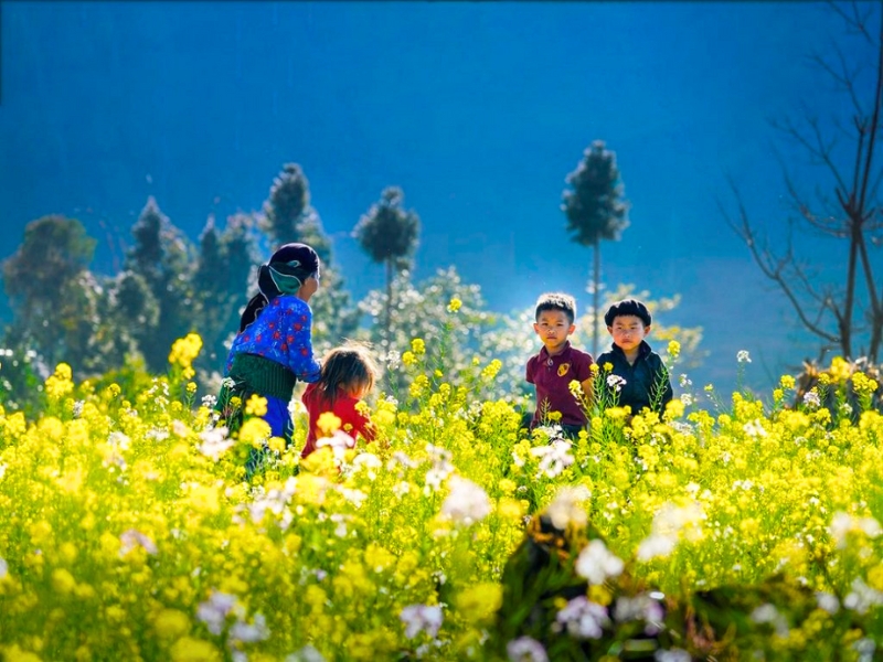 Im Oktober entfaltet Ha Giang die ganze Pracht seiner Naturlandschaften und zählt zu den faszinierendsten Reisezielen Nordvietnams. Es ist die Zeit, in der die Reisterrassen, bereit für die Ernte, im herbstlichen Licht golden leuchten und ein atemberaubendes Schauspiel bieten. Gleichzeitig beginnt die Blüte der Buchweizenblumen, die die Berge in Rosa- und Violetttöne tauchen und den ohnehin beeindruckenden Landschaften eine magische Note verleihen.